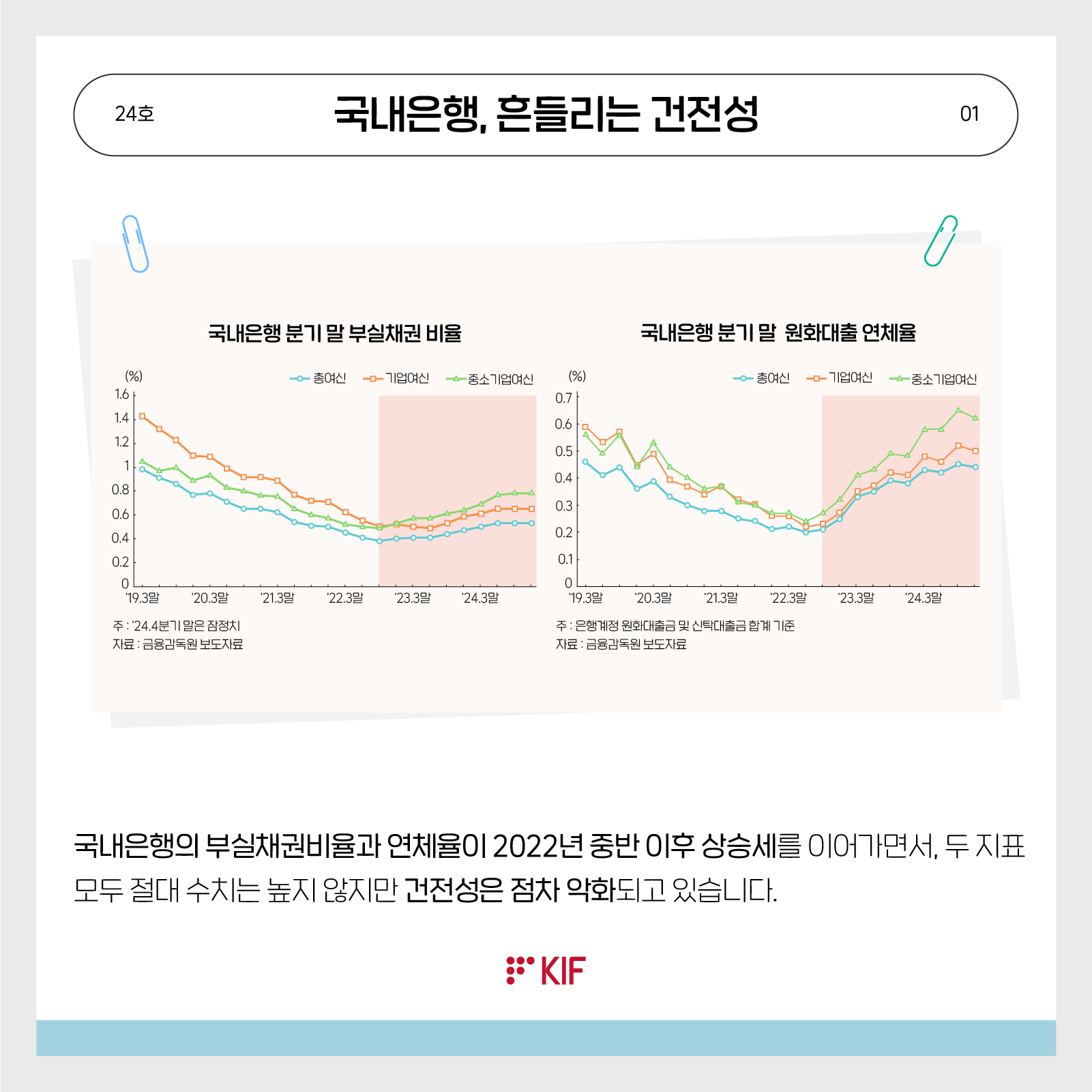 중국 기업의 저가수출 양상과 구조조정 전망중국기업들은 2023년 이후 국내 제조업 과잉설비 문제에 직면해 수출가격 인하를 통해 수출을 확대하고 있는 것으로 보임. 중국의 주요 수출품 모두에서 가격인하 양상이 나타나고 있으며, 특히 수요의 가격탄력성이 큰 소비재 품목의 가격 인하 폭이 더 큰 모습을 보임. 2025년 이후 중국 정부가 악성 가격경쟁을 억제하고 설비 구조조정을 촉진하고 있으나 이는 주로 국내시장을 대상으로 한 것임. 한국과 중국의 수출가격지수는 대체로 동조하고 있으며, 특히 중국이 가격경쟁을 주도하는 품목에서 한국 제품이 강력한 가격하락 압력에... 금융포커스 지만수AI 관련 환경 변화와 금융권 영향 분석 및 시사점AI 강국으로의 도약을 위한 국가적 차원의 투자가 증가하는 가운데 인공지능기본법의 시행과 금융권 AI 가이드라인의 통폐합 등 금융권의 AI 활용과 관련한 환경이 변화하고 있음. 이에 따라 AI 관련 비용의 절감과 성능 개선 등이 기대되므로 국내 금융회사도 인공지능 전환(AX, AI Transformation)을 적극 추진해야 경쟁력을 유지할 수 있음. 다만 거버넌스 관련 규제의 강화에 대비하여 내부통제 시스템을 정교화하는 한편 외부 위탁 증가에 대비하여 제3자 리스크 관리 시스템도 정비할 필요가 있음. 금융포커스 서병호증권사의 수익원 다각화가 경영성과에 미치는 영향최근 국내 증권업은 경쟁 심화로 인해 위탁매매 중심의 수익모델이 한계에 직면하면서 자기매매·투자은행·자산관리 등으로 수익원 다각화가 진행되고 있음. 본고는 다각화가 증권사의 경영성과(수익성 및 안정성)에 미치는 영향을 기업규모별로 분석함. 분석 결과 대형사는 사업모델 재점검을 통해 효율적인 다각화 노력을 강화할 필요가 있으며 중소형사는 전문화를 기반으로 부문 간 시너지 효과를 고려한 전략적 다각화 노력을 강화할 필요가 있는 것으로 나타남. 금융포커스 이지언일본 금융당국의 스타트업 성장자금 공급 논의의 주요 내용최근 일본 금융청은 스타트업 성장자금 공급 관련 간담회에서 논의된 내용을 정리한 보고서를 발표함. 동 보고서에 따르면 일본 스타트업 기업의 경우 리스크가 높은 시드기와 조달액 수요가 커지는 초기 성장기 이후에 충분한 자금을 조달하지 못하고 있는 것으로 평가됨. 일본 금융당국은 스타트업의 자금조달을 지원하기 위해 ① 자금공급 목표 및 참고지표 설정, ② 대규모 투자자에 의한 자금공급 확대, ③ 특수목적법인(SPV)?투자신탁?엔젤투자자의 활용, ④ 준특정투자자제도 도입, ⑤ 비상장 주식의 유통 거래 활성화, ⑥ 비상... 해외 경제 및 금융 이슈 이병관글로벌 은행의 디지털자산 서비스 최근 동향과 시사점최근 글로벌 은행들은 핀테크 기업과의 협력을 통해 수탁, 스테이블코인, 자산토큰화 등 디지털자산 서비스를 확대하며 전통 금융과 디지털 금융 인프라의 연계를 강화하고 있음. 일본은 토큰화 예금 도입과 관련 제도 정비를 추진하고 있으며, 미국 주요 은행들도 암호화폐 수탁 및 온체인 결제 서비스를 재개·확대하는 등 디지털자산의 제도권 편입이 본격화되고 있음. 다만 국제결제은행(2025)은 국가 간 규제 불일치와 기술적 리스크가 여전히 존재하기 때문에 글로벌 은행들은 디지털자산 서비스 확장과 병행하여 내부통제 및 리스... 해외 경제 및 금융 이슈 주영민