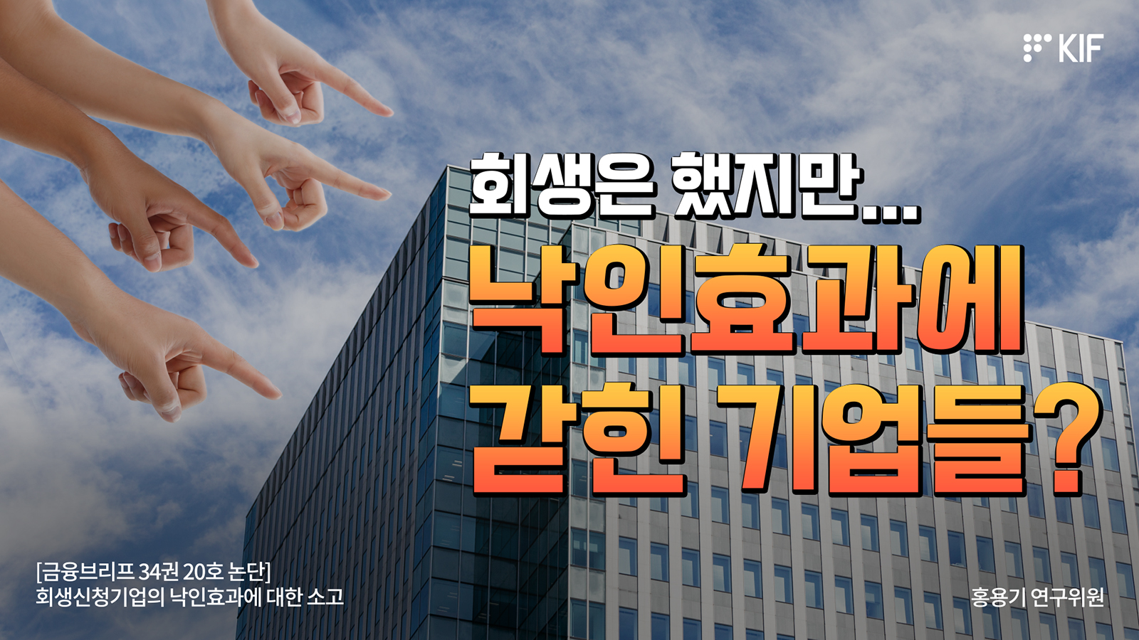 금융브리프금융브리프회생은 했지만... 낙인효과에 갇힌 기업들?기업회생제도는 채무 상환이 어려운 기업을 법원의 감독 아래 구조조정해 존속가치를 보존하도록 돕는 제도로, 2024년에는 회생 신청 건수가 1,094건에 이를 만큼 활발히 이용되고 있습니다.그러나 회생절차가 오히려 ‘부실기업'이라는 부정적 낙인효과를 초래해 기업의 자금조달·거래·인력유치 등을 어렵게 만들 수 있으며, 이로 인해 기업들이 적기에 제도 이용을 주저할 수 있다는 점이 지적되어 왔습니다. 정부와 법원은 이를 완화하기 위해 pre-ARS 제도와 하이브리드 구조조정 등 다양한 제도적 개선을 추진해 왔습니다. 2018년부터 2024년까지 회생신청기업 중 2,487개사를 분석한 결과, 회생신청 이후 주거래은행이 시중은행과 특수은행에서 중소기업 대상 정책금융기관으로 대거 이동하는 현상이 확인되었습니다.이는 낙인효과로 인해 회생기업의 금융시장 접근성이 저하되었을 가능성과 함께 낙인효과 완화를 위한 정책적 대응의 지속적 필요성을 시사하는 간접적 증거입니다. 다만 현재 분석에서는 이러한 변화가 낙인효과 때문인지, 혹은 회생과정에서의 기업 신용등급 하락 등 다른 요인 때문인지 명확히 구분되지 않아, 향후 정교한 계량분석을 통한 추가 연구가 필요합니다.경제성장을 위해서는 기술 발전이나 자본 축적이 필요할 뿐 아니라 자본과 노동과 같은 경제 내 자원이 효율적으로 배분되어 있어야 합니다. 기업회생제도는 자원의 효율적인 재배분을 촉진하는 핵심적인 구조조정 장치입니다. 기업회생제도가 제 역할을 다하기 위해서는 기업이 회생절차 이후에도 정상적인 금융 접근성을 가질 수 있도록 제도적 기반을 강화할 필요가 있으며, 이러한 제도개선을 뒷받침하기 위해 엄밀한 증거 기반의 연구가 필요합니다.